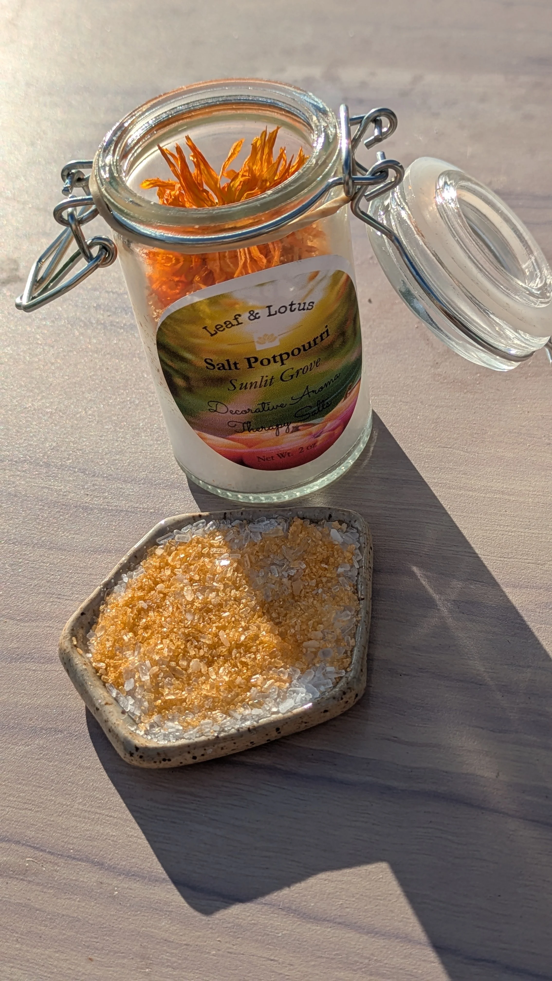 Bring the beauty of nature into your home with our handcrafted botanical salt potpourri. Made with mineral-rich salts and carefully chosen botanicals, these blends are designed to naturally freshen the air, absorb odors, and release gentle aromatherapy benefits. Simply display in a decorative dish and refresh with a few drops of your favorite essential oil as needed.